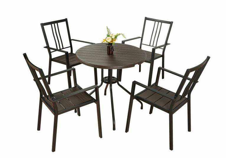 SET PLASTIC WOOD 80: tavolo + 4 sedie, struttura tavolo e sedie in ferro colore nero, piano d'appoggio in polietilene alta densità colore nerotavolo d. cm 80 x h 74 - sedia cm 61 x 54.2 x h 89