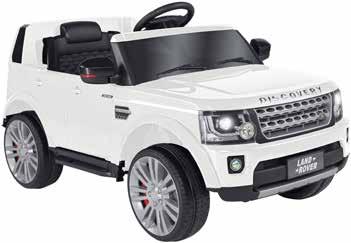bianca batteria 12v 7 ah - dim. cm. 103 x 69 x 55 altezza - portata massima 30 kg - anni 3+ - due velocita' da 1,8 a 3,7 km/h - accensione con effetti sonori, clacson funzionante - porte apribili - retromarcia - fari led anteriori - usb, mp3, musica, radio - 4 ruote ammortizzatecofano anteriore apribile con vano porta oggetti - radiocomando