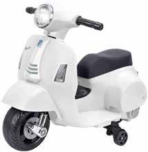 a batteria 6 volt 4,5 ah.accensione con effetti sonori, retromarcia, fari led anteriori, musica e suoni, bauletto posteriore portaoggetti, portata max 20 kg, dim. cm. 79x41x46 altezza, anni 3+