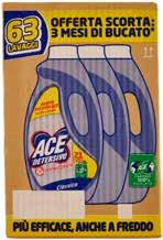 3 / / 30 40 50 DA € 2,83 -30 % € 1,99 ACE IGIENE+ ADDITIVO IGIENIZZANTE SENZA CANDEGGINA 900 ml DA € 7,90 -37% € 4,90 CALGON NATURA+ GEL ANTICALCARE LAVATRICE 750 ml DA € 13,90 -35 % € 8,90 CALGON POWER TABS 4IN1 ANTICALCARE LAVATRICE 30 TABS 390 g DA € 8,79 -26 % € 6,45 ACE DETERSIVO IGIENIZZANTE CLASSICO/ COLORATI 63 Lavaggi DA € 1,49 -30 % € 0,99 LINES IDEA ULTRA ASSORBENTI VARI FORMATI DA € 2,39 -37% € 1,49 VIDAL BAGNODOCCIA PROFUMAZIONI ASSORTITE 600 ml DA € 7,60 -22 % € 5,89 LINES SPECIALIST PANTS DISCREET 7/8 pezzi DA € 3,40 -23 % € 2,59 COCA-COLA ORIGINAL / ZERO ZUCCHERI 2x 1350 ml al l € 0,96 DA € 4,49 -22 % € 3,49 CHIARLI 1860 LAMBRUSCO MODENA D.O.C. SECCO / AMABILE 1500 ml al l € 2,33 DA € 7,49 -40 % € 3,99 SOLE DETERSIVO LAVATRICE LIQUIDO 41 lavaggi € 2,99 DA € 4,59 -30 % SCALA DETERGENTE PIATTI LIMONE 5x 750 ml € 3,95 DA € 7,90 -50 % FOXY CARTA IGIENICA LOVE THE BEE 12 rotoli