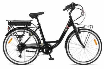 telaio in acciaio colore nero - forcella ammortizzata - freni v-brake anteriore e posteriore - ruota 26” - motore 250w 36v batteria al litio 7,8 ah 280 wh - display led con 3 liveli di assistenza con soft start - cambio 6 rapporti - pendenza max 10° - peso kg 24 - portata max 100 kg funzione “walk” per il trasporto a piedi della bicicletta - portapacchi anteriore e posteriore in acciaio