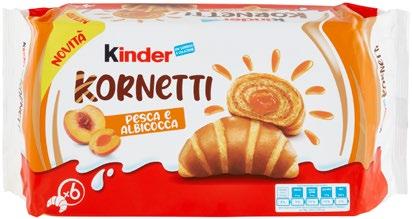 KINDER Kornetti cioccolato, albicocca/pesca pz 6 x g 42 al kg € 10,51