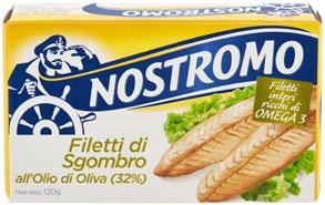 0,59 MARE APERTO tonno all' olio di oliva e un pizzico di sale pz 6 x g 70 €4,49 PORTOROSE tonno al naturale pz 3 x g 80 €1,99 NOSTROMO filetti di sgombro all'olio di oliva g 120 €1,99 FILETTI DI ACCIUGHE g 80 €1,89