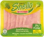 ROVAGNATI Snello GranCotto g 100 (al kg € 18,90) 3,99 BERETTA Prosciutto Cotto per Toast g 400 (al kg € 9,98) 1,89 SELEX pancetta a cubetti dolce, affumicata pz 2 x g 80 (al kg € 11,81) 1,59 SELEX Wurstel di Puro Suino pz 3 - g 250 (al kg € 6,36) 0,79 SELEX Wurstel di Suino pz 4 - g 100 (al kg € 7,90) 1,19 SAPER DI SAPORI piadine fresche sottili pz 3 x g 120 (al kg € 3,31) 2,89 SELEX salmone norvegese affumicato a fette g 50 (al kg € 57,80)