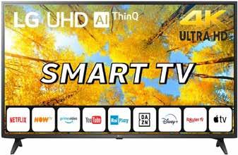 con schermo led - risoluzione 3840 × 2160 - hdmi - wifi - bluetooth - decoder digitale terrestre dvb-t2 hd - decoder satellitare s2 hd - ingressi hdmi - usb multimediale (audio video foto) - smart tv webos lg, netflix, now, prime video, youtube, raiplay, dazn, disney+, rakuten tv, apple tv ecc...