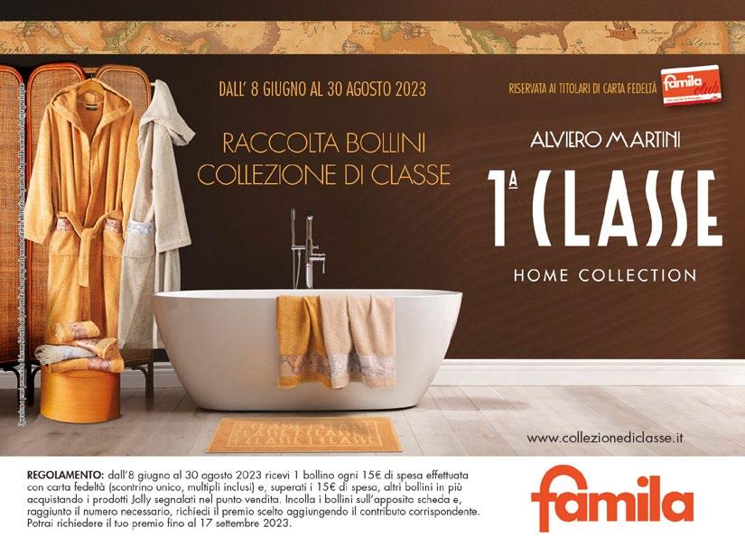 famila.it segui le nostre imperdibili offerte www.collezionediclasse.it SCOPRI I PRODOTTI CHE TI PERMETTONO DI ACCELERARE LA TUA RACCOLTA BOLLINI COLLEZIONE DI CLASSE 3,99 al litro € 6,33 / € 7,39 PRIL gel lavastoviglie assortite 35/30 lavaggi ml 630/540 0,79 al litro € 1,05 SCALA detersivo piatti Igienizzante sgrassante limone ml 750 1,99 FOXY Asso Ultra asciugatutto decorato 2 maxi rotoli 3,99 al litro € 2,28 CHANTECLAIR detersivo lavatrice muschio bianco 35 lavaggi litri 1,75 7,90 DASH Power Pods extra igienizzante, extra smacchiante 19 lavaggi RISERVATO AI TITOLARI DI CARTA CLUB 2,99 al kg € 14,24 LENOR UNstoppables Fresh profumo per il bucato g 210 2,79 al litro € 2,33 / € 2,43 VERNEL ammorbidente concentrato blu oxygen, sogni di loto 48/46 lavaggi ml 1200/1150 2,19 AMUCHINA Additivo Bucato Igienizzante con Ammorbidente litri 1 RISERVATO AI TITOLARI DI CARTA CLUB 1,99 al litro € 3,06 ACE candeggina Più Gentile +Oxygen ml 650 1,49 al litro € 2,29 SMAC EXPRESS sgrassatore assortito ml 650 RISERVATO AI TITOLARI DI CARTA CLUB 1,49 ACE detergente pavimenti assortiti litri 1 RISERVATO AI TITOLARI DI CARTA CLUB 1,49 al litro € 2,13 ACE Wc Gel candeggina ml 700 RISERVATO AI TITOLARI DI CARTA CLUB 1,49 BREF WC Blue Activ+ Igiene 1 BOLLINO 2 BOLLIN 3 BOLLIN 2 BOLLINI