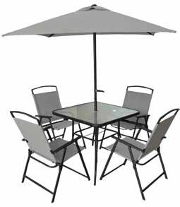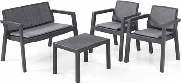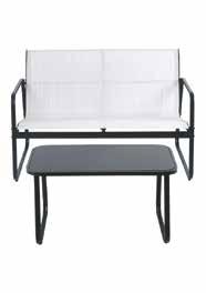 Saint Tropez set 4 pezzi giardino struttura in metallo, rivestimento in textilene: 2 poltroncine: (lxpxh) 76,5x59x75,5 cm + 1 divanetto 2 posti: (lxpxh) 112,5x76,5x75,5 cm + 1 tavolino con top in vetro temperato (lxpxh) 75x44,5x41 cm