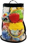 ZAINO MARE CON 12 ACCESSORI contiene un secchiello cm.14 cm, 4 formine, 1 anna atoio, 1 pallina cm.14, 1 frisbie