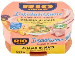 € 1,59 PEPERLIZIA PONTI Cipolline/ Peperoni/ Giardiniera 210 g (al kg € 7,57 / 7,23) € 0,65 OLIVE VERDI SACLÀ Snocciolate/ Rondelle 85 g (al kg € 7,65) € 0,79 FAGIOLI VALFRUTTA Borlotti/ Corona 360 g (al kg € 2,19) € 2,49 MAIS BONDUELLE x3 - 450 g (al kg € 5,53) € 1,99 MAIONESE CALVÈ Classica 450 ml (al lt. € 4,42) € 2,19 TONNO MAREBLU all' Olio di Oliva x3 - 240 g (al kg € 9,13) € 4,69 TONNO RIO MARE ALL'OLIO DI OLIVA x2 - 320 g (al kg € 14,66) € 1,69 FILETTI DI SGOMBRO DELICIUS Al Naturale/ All' Olio di Oliva 125 g (al kg € 13,52) € 2,49 INSALATISSIME RIO MARE Fagioli/ Orzo e Farro/ Mais 160 g (al kg € 15,56) € 4,49 CARNE SIMMENTHAL x3 - 420 g (al kg € 10,69) € 4,79 OLIO EXTRA VERGINE DI OLIVA ZUCCHI 1000 ml € 0,89 PATATINE ELDORADA AMICA CHIPS Tradizionale/ Grigliata/ con Olio di Oliva/ Salsa Barbecue 130 g (al kg € 6,85)