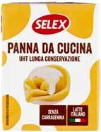 15 ALIMENTI CONFEZIONATI MOLINO VIGEVANO FARINA PER PIZZA TIPO 1500 g al kg € 2,98 € 1,49 GRAN GALLO RISO CARNAROLI 1 kg € 2,89 LUCIANA MOSCONI PASTA ALL'UOVO VARI FORMATI 500 g al kg € 4,98 € 2,49 TONNO MAREBLU OLIO OLIVA 8x 60 g al kg € 10,19 € 4,89 FILETTI TONNO VASO VETRO OLIO OLIVA gr.200 al kg € 24,95 € 4,99 CALVÈ CLASSICA 225 ml al l € 5,29 € 1,19 ACCADÌ BENESSERE PANNA DA CUCINA SENZA LATTOSIO* 3x 100 ml al l € 5,13 € 1,54 PARMALAT CHEF PANNA DA CUCINA 3x 125 ml al l € 5,81 € 2,18 DEL VERDE PASTA DI SEMOLA FORMATI ASSORTITI 500 g al kg € 1,50 € 0,75 PASTIFICIO LIGUORI PASTA DI GRAGNANO I.G.P. GRANO 100% ITALIANO FORMATI ASSORTITI 500 g al kg € 1,98 € 0,99 GRAN PAVESI SFOGLIE 150 g al kg € 9,87 / 8,22 € 1,48 SELEX VIVI BENE PANNA DA CUCINA UHT SENZA LATTOSIO 200 ml al l € 3,75 € 0,75 SELEX PANNA DA CUCINA UHT 200 ml al l € 3,45 € 0,69 SELEX BESCIAMELLA PRONTA PER CUCINARE A LUNGA CONSERVAZIONE 500 ml al l € 2,38 € 1,19 BRODO DI CARNE/ VERDURE. SENZA € 0,69 DA € 1,00 -31 % PARMALAT CHEF PANNA AI FUNGHI/ AL SALMONE 2x 125 ml al l € 7,96 € 1,99 DA € 2,55 -21 %