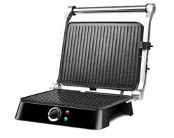 GIRMI BS44 BISTECCHIERA EFFETTO PETRAVERA, corpo inox, potenza: 1400 w - piastre antiaderenti con rivestimento “petravera” - piastre 29 x 23 cm, con possibilità di apertura a libro 180° - regolazione della temperatura - 2 spie di funzionamento e temperatura - ampia maniglia antiscottatura - cassetto per raccolta liquidi