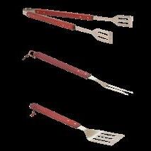 SET 3 UTENSILI BARBECUE in acciaio - manico in legno - il set è composto da: forchettone cm. 40 + pinze cm. 40,5 + spatola cm. 41