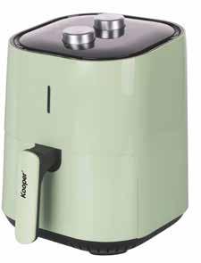 KOOPER FRIGGITRICE AD ARIA LITRI 5,5 - colore verde - friggitrice ad aria dorè - interno antiaderente - impugnatura termoresistente - indicatori luminosi di funzionamento - timer 0-30 min - sistema di controllo di temperatura 80-200°c - sistema di autospegnimento - potenza: 1400w - capacità: 4,8 lt