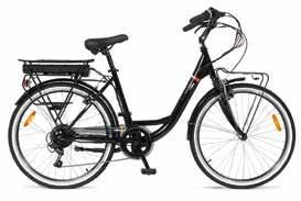 Bici elettrica City Easy Comfort telaio in acciaio colore nero - forcella ammortizzata - freni v-brake anteriore e posteriore - ruota 26” - motore 250w 36v batteria al litio 7,8 ah 280 wh - display led con 3 liveli di assistenza con soft start - cambio 6 rapporti - pendenza max 10° - peso kg 24 - portata max 100 kg funzione “walk” per il trasporto a piedi