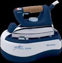 potenza totale 2000 w. caldaia in acciaio inox da 0,8 lt. pressione 3 bar. spia pronto vapore e fine acqua, ferro professionale con manico in sughero, piastra in alluminio, funzione vapore continuo