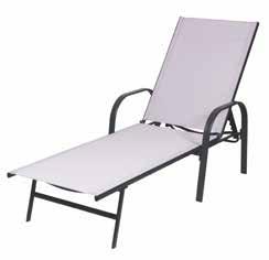 - struttura in metallo finitura matt - con braccioli - seduta in poliestere reclinabile in 4 posizioni - dim. cm. 194x70x95,5 h. - colore seduta bianco ghiaccio - struttura colore grigio canna di fucile