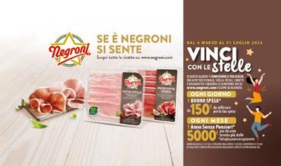 NEGRONI salame Negronetto g 210 al pezzo € 15,67 3,29 SELEX pancetta a cubetti dolce, affumicata pz 2 x g 80 al kg € 11,81 1,89 SOTTILETTE Classiche g 400 al kg € 6,50 2,60 FRUTTI DEI SOGNI bresaola della Valtellina I.G.P. Punta d'Anca g 100 all'etto 4,19 GARDANI petto di tacchino arrosto al miele g 120 al kg € 35,75 4,29 GRANAROLO Oggi Puoi mozzarella pz 3 x g 100 al kg € 8,17 2,45 GRANAROLO BENESSERE mozzarella ad alto contenuto di proteine g 100 al kg € 9,80 0,98 MANDARA mozzarella di latte di bufala bocconcini g 300 al kg € 13,17 3,95 GRANAROLO Latte UHT parzialmente scremato litri 1 al litro 1,15 ZYMIL Alta Digeribilità Senza Lattosio litri 1 al litro 1,69 CHEF panna cucina leggera uht pz 3 x g 125 al litro € 6,13 2,30 GRANAROLO Oggi Puoi stracchino g 160 al kg € 8,69 1,39 PHILADELPHIA g 350 al kg € 8,29 2,90 NEGRONI prosciutto cotto Stella g 110 al kg € 18,09 1,99 NEGRONI prosciutto crudo g 100 al kg € 19,90 1,99 GRAN MORAVIA formaggio grattugiato g 100 al kg € 11,80 1,18
