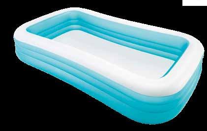 PISCINA RETTANGOLARE 3 ANELLI dim. cm. 305x183x56 altezza - struttura autoportante senza telaio (gonfiabile) 3 camere d'aria ciascuna con valvola per gonfiare e sgonfiare - profondità 37 cm - tappo di scaricocerotto di riparazione - dai 6 anni in su.