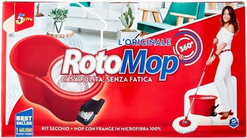 SUPER5 ROTOMOP 360° KIT SECCHIO + MOP CON FRANGE IN MICROFIBRA 100% PREZZO SHOCK! € 19,80