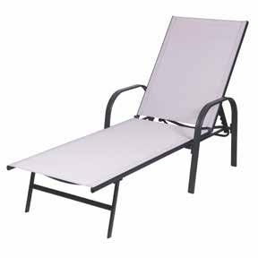 - struttura in metallo finitura matt - con braccioli - seduta in poliestere reclinabile in 4 posizioni - dim. cm. 194x70x95,5 h. - colore seduta bianco ghiaccio - struttura colore grigio canna di fucile