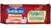 2 Pinsa Base per pizza bianca ALIMENTA g 230 - al kg € 5,61 € 1,29 DA € 2,10 - 38% Yogurt MILA gusti assortiti g 125x8 € 1,85 DA € 2,97 - 37 % Latte VALSESIA Parzialmente scremato ml 500 - al litro € 1,16 € 0,58 DA € 0,95 - 38% SOTTILETTE classiche g 571 - al kg € 6,29 € 3,59 Platessa impanata FINDUS g 250 - al kg € 12,60 € 3,15 Biscotti Mulino Bianco BARILLA assortiti kg 1 Cracker di riso SCOTTI Bio g 200 - al kg € 8,75 € 1,75 Buondì MOTTA classico g 33x6 - al kg € 5,00 € 0,99 DA € 1,38 - 28% Wafer multipack GASTONE LAGO cacao/nocciola g 450 - al kg € 3,98 € 1,79 DA € 2,75 - 34 % Rustici RANA ripieni assortiti g 250 - al kg € 7,96 € 1,99 DA € 3,29 - 39 % Galbanino GALBANI g 270 - al kg € 7,96 € 2,15 DA € 2,39 - 10 % Grana Padano Riserva Saper di Sapori SELEX g 300 - al kg € 11,63 € 3,49 DA € 5,25 - 33 % € 2,49 DA € 2,99 - 16 %