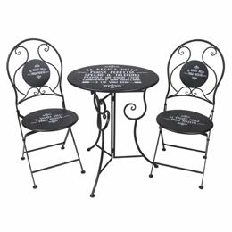 SET TAVOLO + 2 SEDIE - in ferro, il set si compone di 1 tavolo richiudibile diam. cm. 60x72 altezza + 2 sedie richiudibili dim. cm. 38x38x94 altezza - colore nero - portata max 100 kg