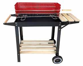 dim. cm. 83x33x86 altezza - con ruote, spiedo, maniglia in legno per il trasporto, doppio piano di appoggio con doghe in legno, griglia regolabile in altezza - peso kg. 5 € 29,90