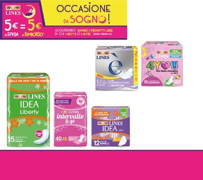 TESORI D'ORIENTE doccia crema aromatica assortito ml 250 1,49 FRESH & CLEAN sapone liquido ecoricarica litri 1 1,99 FRANCK PROVOST Il Colore Professionale assortito 4,90 PARODONTAX dentifricio Original, Whitening, Ultraclean ml 75 2,90 LYCIA linea deodoranti ml 150 1,89 LYCIA detergente intimo formula fresca pH 4.5 con estratto di menta ml 200 1,49 LINES 4YOU assorbenti in Lactifless notte/giorno con Ali pz 9/10 2,99 LINES IDEA assorbenti assortiti pz 8/10/12/14/15 LINES È assorbenti ali, notte, lungo, extra protezione 2,99 TUSCANY carta igienica 3 veli - pz 12 4,99 BIC rasoio Lady Pure pz 3 6+2 2,49 SENSITIVE monorotolo 3,49 FOXY Love the Bee asciugatutto 6 rotoli 3,99 CLEAR shampoo assortito ml 225