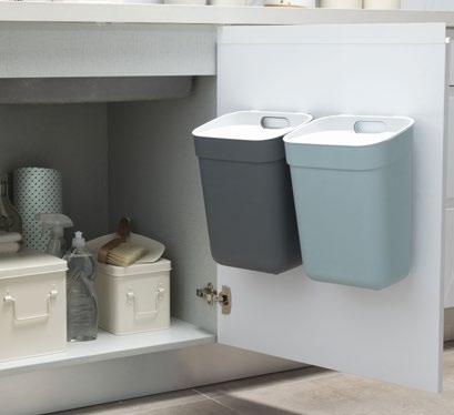 PATTUMIERE READY TO COLLECT CURVER realizzate in materiale riciclato, con fermasacco, maniglia ergonomica e incluso accessorio per eventuale aggancio al muro.
