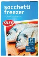 1,89 SELEX tramezzini assortiti 2 pz x g 85 al kg € 12,60 1,29 SAPER DI SAPORI piadine fresche sottili 3 pz x g 120 al kg € 3,58 1,49 SELEX crema dessert vaniglia, cioccolato 4 pz - g 500 al kg € 2,98 0,69 SELEX VIVI BENE Bifidus Drink assortito g 200 al kg € 3,49 0,75 SELEX yogurt assortiti pz 2 x g 125 al kg € 3,00 2,79 SELEX yogurt assortiti pz 8 x g 125 al kg 1,79 SELEX Vongole surgelato g 250 al kg € 17,90 4,49 SELEX cuori di filetti di nasello surgelato g 300 al kg € 14,97 2,29 SELEX bastoncini di merluzzo surgelato 12 pz - g 300 al kg € 7,63 3,29 SELEX bastoncini di merluzzo surgelato 18 pz - g 450 al kg € 7,31 3,99 SELEX pizza Margherita surgelata pz 2 - g 660 al kg € 6,04 2,69 SELEX Ministecchi 8 pezzi - g 250 al kg € 10,76 1,99 SELEX Ghiaccioli assortiti 10 pz - g 700 al kg € 2,84 2,99 SELEX Gelato assortito g 500 al kg € 5,98 20,20 SELEX spinaci foglia su foglia surgelato kg 1 1,25 SELEX crepes assortito surgelato g 200 al kg € 6,25
