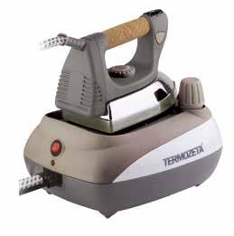 - macchina da stiro di tipo professionale con manico in sughero, piastra in alluminio, manopola per spegnimento / accensione ferro e regolazione temperatura, tasto di erogazione vapore, caldaia in acciaio, pressione 3,5 bar, tasto con dispositivo di sicurezza, spia luminosa pronto vapore, potenza 2000 watt