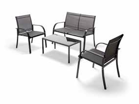 SET RODI - struttura in acciaio verniciato - poltrone in texilene - tavolino con piano in vetro - colore grigio chiaro: 2 poltrone dim. cm. 66,5x58x82 h. + sofa dim. cm. 106x66,5x82 h. + tavolino dim. cm. 85x45x38 h.