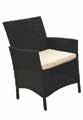 Set 4 pz giardino struttura in metallo - rivestimento in polyrattan nero con intreccio tipo wicker - 3 cuscini imbottiti colore avorio rivestimento in poliestere sfoderabile con zip - fodere dei cuscini lavabili in lavatrice a basse temperature - il set si compone di: 2 poltroncine: (lxpxh) 54x59x84 cm + 1 divanetto 2 posti: (lxpxh) 101x59x84 cm + 1 tavolino con top in vetro temperato (lxpxh) 71x41x39 cm