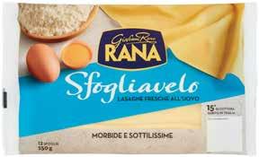 10 NEL BANCO FRIGO GIOVANNI RANA SFOGLIAVELO LASAGNE FRESCHE ALL'UOVO 250 g al kg € 6,32 € 1,58 RANA SFOGLIAGREZZA PASTA ALL'UOVO VARI FORMATI 250 g al kg € 4,60 € 1,15 FRATELLI BERETTA MORTADELLA DI PURO SUINO CON PISTACCHIO 500 g al kg € 9,96 € 4,98 BELLA LODI RASPADURA DI FORMAGGIO SENZA LATTOSIO 170g al kg € 19,35 € 3,29 CASEIFICIO PEZZANA TOMINO ALLA DIAVOLA 0,220 kg al kg € 15,86 € 3,49 ROBIOLA VACCINA CAROZZI 200 g al kg € 12,45 € 2,49 BURRO CERRI 250 g al kg € 10,76 € 2,69 PANNA UHT ELENA 200 ml al l € 7,95 € 1,59 RASPINI GIRELLO BOLLITO 90 g al kg € 39,89 € 3,59 PIADINA ROMAGNOLA IGP ALLA RIMINESE PIADA D'ORO 480 g al kg € 3,10 € 1,49 BUITONI LA SFOGLIA RETTANGOLARE PASTA SFOGLIA FRESCA RETTANGOLARE ROTOLO 230 g al kg € 6,48 € 1,49 AIA WUDY AL FORMAGGIO 150 g al kg € 4,60 € 0,69 STEMARPAST TROFIETTE LIGURI 500 g al kg € 4,30 € 2,15 6 UOVA FRESCHE DA GALLINE ALLEVATE A TERRA € 1,79