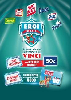 AURORA Rotolosi 2 veli 6 maxi rotoli 3,90 SOFT FLOWER asciugamano 400 strappi 2,99 DASH Pods detersivo lavatrice capsule classico/color 31 lavaggi - g 651 9,90 CITROSIL detergente spray, disinfettante pavimenti ml 650, ml 900 1,99 DIXAN liquido classico 24 Lavaggi ml 1.080 5,99 GREY l'Acchiappacolore 40 fogli 3,90 DEOX ammorbidente concentrato assortito 33 lavaggi ml 660 1,39 OMINO BIANCO additivo igienizzante in polvere/ liquido/ caps g 450/ pz 10 2,15 WC NET tavoletta wc gel assortiti pz 4, pz 2 1,99 *Ogni ora: dalle 08:00:00 alle 19:59:59. Conserva lo scontrino, vai sul sito concorsi.donnad.it e segui le istruzioni. Concorso a premio valido dal 02.05.2023 al 31.07.2023. Montepremi Euro 58.285 (Iva esclusa o esente). Regolamento completo sul sito concorsi.donnad.it Ogni consumatore può partecipare al massimo 6 volte e vincere massimo 1 premio Instant Win e massimo 1 premio estrazione nale. Sono esclusi dalla manifestazione prodotti Vernel Profumatori per Bucato. 99 39 SPUMA DI SCIAMPAGNA ammorbidente concentrato assortito 65 lavaggi - litri 1,3 2,49 ACE sgrassatore spray assortito ml 500 1,49 LYSOFORM detersivo lavatrice liquido 54 lavaggi ml 2430 6,99