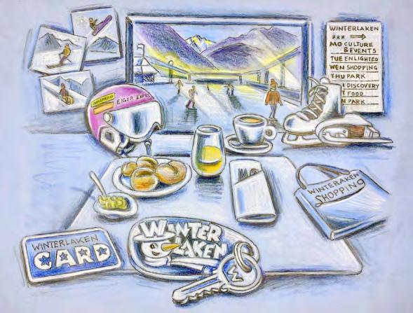 Das bestehende Angebot an erlebnisreichen Ausflugsmöglichkeiten und spannenden Veranstaltungen ist gross. In Workshops hat die TOI mit Partnern Konzeptideen erarbeitet, um die Vielfalt an Bestehendem besser zu bespielen und den Gästen ein belebtes Interlaken zu bieten. Die daraus entstandenen 18 Konzeptideen wurden durch den Künstler Kurt Brunner anschaulich skizziert. Diese wurden innerhalb der TOI und mit involvierten Partnern geprüft und konkretisiert. Entscheidend für den Erfolg ist die gute Zusammenarbeit mit allen Partnern und Leistungsträgern vor Ort. Das Konzept kam nicht nur beim TOI-Vorstand gut an. Winterlaken stiess bei allen bisher involvierten Partnern auf grossen Zuspruch. Es ist erfreulich, dass auch einige Leistungsträger ihr Angebot bereits im Winter 22/23 ausbauten.