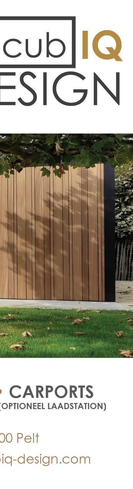 op haar lentedegustatie op zaterdag 30 maart 2019! Proef gratis welk glas wijn u wil schenken tijdens uw voorjaarsfeest! Tot gauw! Schoebroekstraat 63 (Industriezone Ravenshout) 3583 Paal - T. 011 43 76 83 Ma - Vrij: 9u - 18u | Za: 9u - 17u Zo: gesloten Emiel Van Dorenlaan 62 3600 Genk - T. 089 79 13 99 Di - Vrij: 9u - 18u | Za: 9u - 17u Ma & Zo: gesloten www.drankengijbels.be bieren | frisdranken | snoep | wijn | likeuren | koffie Uw drankenspecialist BERINGEN BERINGEN-MIJN PAAL HASSELT ANTWERPEN HAM TESSENDERLO BEVERLO afrit 26 afrit 26 E313 Savedate the wijndegustaties PaalPaalGenk zaterdag 19 november zaterdag 26 november zondag 27 november Meer dan… ...1500 bieren met een mooi assortiment aan geuze en Limburgse bieren ... 25 alcoholvrije bieren ... 500 wijnen & champagnes ... 150 soorten gin ... 100 soorten rum Drankenspecialist OOK voor particulieren HEKWERKEN & CARPORTS MODERNE POORTEN, OOK IN ALUMINIUM • SIERPOORTEN EN HEKWERKEN • CARPORTS EN OVERKAPPINGEN/LUIFELS DRAADAFSLUITING • INDUSTRIËLE DRAAI EN SCHUIFPOORTEN Steenovenstraat 17, 3941 Hechtel-Eksel T 011 63 55 78 - F 011 63 57 84 info@japo.be www.japo.be openingsuren maandag tot donderdag 9u - 12u en 13.30u - 18u | vrijdag 9u - 12u en 13.30u - 17u zaterdag op afspraak | zondag gesloten GRATIS CODEKLAVIER +2 ZENDERTJES