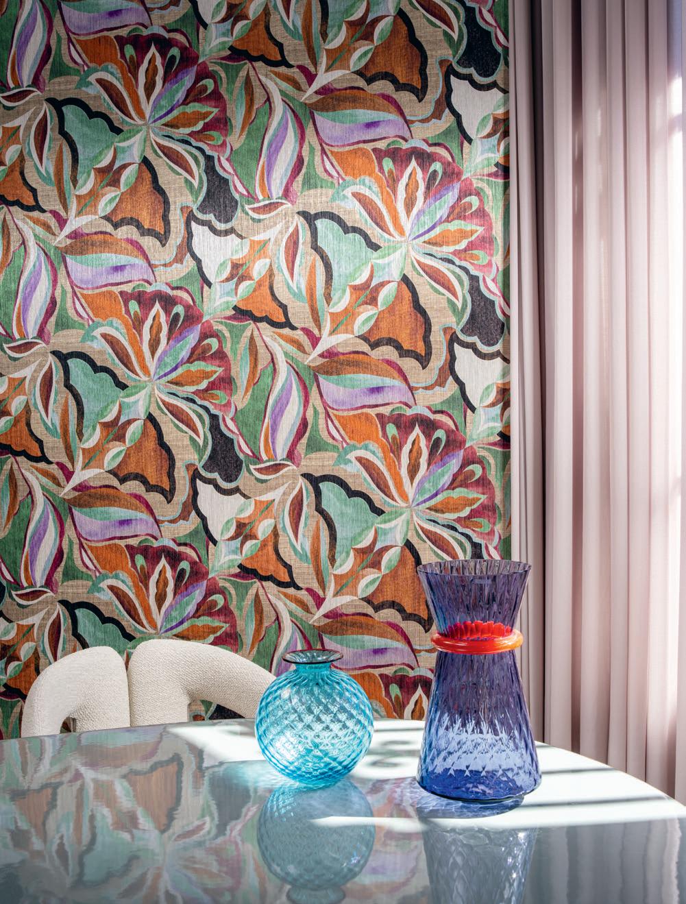 Dat typische najaarsgevoel voelt voor ons dus niet als loslaten, maar als een aangename gloed die zich met haar warme kleuren verspreidt. Het baant zich een okergele, dieprode, en groenbruine weg naar binnen en nestelt zich in onze harten, interieurs en kleerkasten.