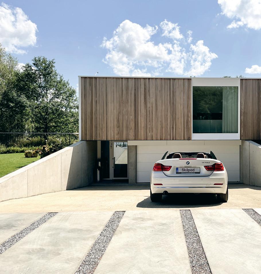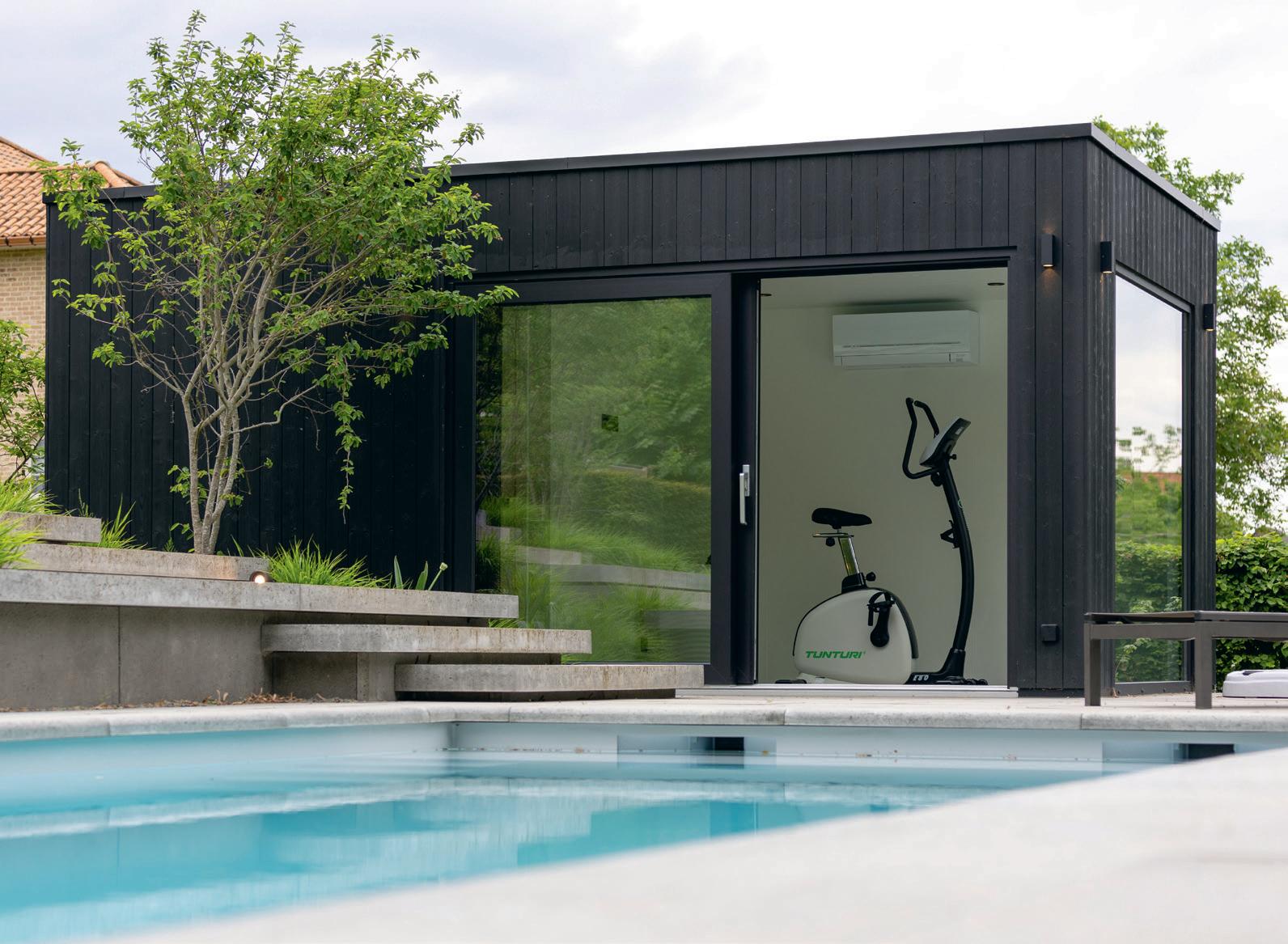 Op welke manier staan jullie in het leven? Is dat ook zichtbaar in hoe jullie wonen? Wij houden van rust. Daarom kozen we bewust voor een blinde voorgevel waarbij afleiding van passerend verkeer etc. wordt geweerd. Om diezelfde reden zijn we doorgaans behoorlijk georganiseerd en opgeruimd. Met de grote ramen achteraan, zetten we in op een maximale verbinding met de natuur. En een dagelijkse koude dip in de zwemvijver geeft ons meteen een frisse kijk op de nieuwe dag die begint. Ook het bijgebouw waar Studio Bloom is, helpt ons om actief rust te praktiseren.