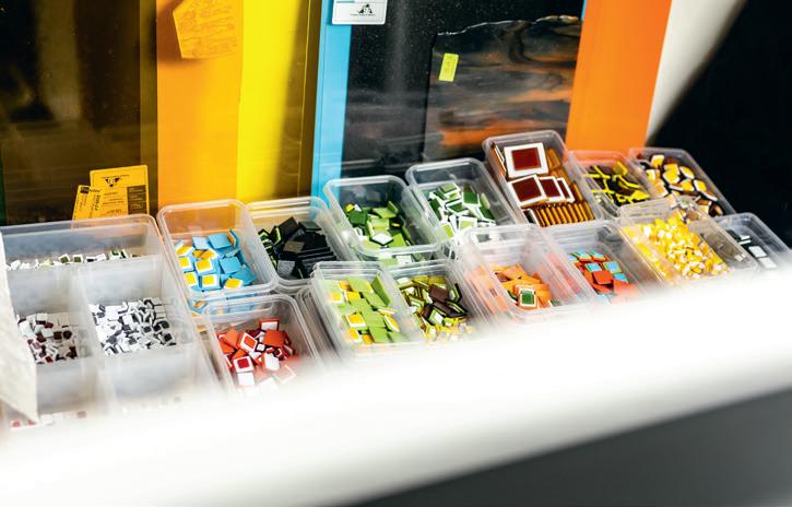 Hans heeft voor zijn glaskunst nood aan een plaats waar hij ruwe werken kan uitvoeren. Het glas in lood krijgt hier bovendien immens veel zonlicht waardoor het helemaal tot zijn recht komt. In het binnenatelier gebeurt vooral het fijnere werk.