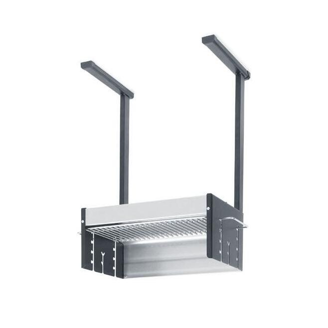 staal en een gesloten rolwagen met ruimte voor de gasfles. De zwarte console geeft hem een chique uitstraling! Een zijbrander met geëmailleerd