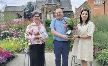 Meedoen was eenvoudig want een stuk gazon gewoon laten groeien is al voldoende. Je kon er ook voor kiezen om een bloemenweide in te zaaien, vaste planten te zetten of heerlijke bessenstruiken te planten. In Beringen groeide zo 709.283 m² of meer dan 70 hectare aan bijenbuffet. Caroline ontving van schepenen Jessie De Weyer en Tijs Lemmens het boek ‘Lulu Keverdokter’ van Annelies Vanoppen. Met haar groene vingers voorziet ze bijenvriendelijke planten in haar tuin en houdt ze ervan om mooie boeketten te maken met bloemen uit haar eigen tuin. Zo’n boeket schonk ze zelfs als teken van dank aan de bib.