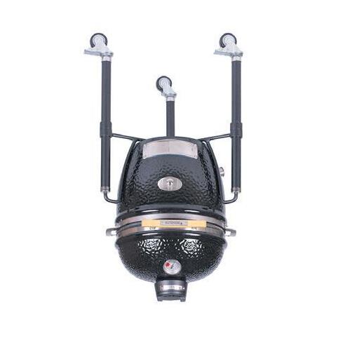 staal en een gesloten rolwagen met ruimte voor de gasfles. De zwarte console geeft hem een chique uitstraling! Een zijbrander met geëmailleerd