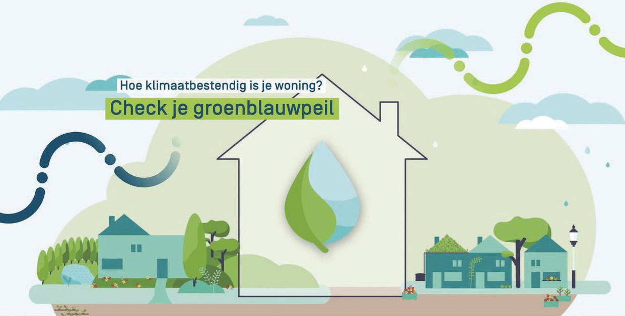 Wil je weten hoe goed je woning of tuin bestand is tegen klimaatverandering? Gebruik de tool op groenblauwpeil.be om jouw klimaatscore te ontdekken.