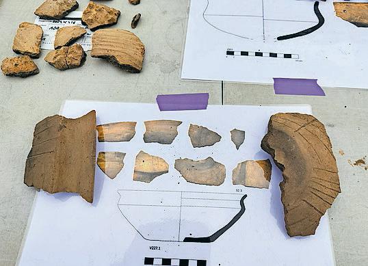 “Momenteel hebben we 12 procent van de totale oppervlakte van 5 hectaren onderzocht”, zegt Sebastien. “Uit sporen blijkt dat er hier vooral bewoning was tijdens het brons- en ijzertijdperk. De Romeinen hadden blijkbaar minder interesse in deze site. Ook uit de middeleeuwen vinden we sporen. Uit de Nieuwe Tijd vallen vooral greppels op, als afbakening van het eigen woongebied. Kolmenveld was blijkbaar toen al een gegeerde plek om te wonen”. (lacht)
