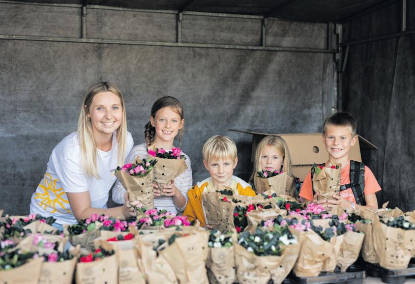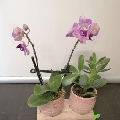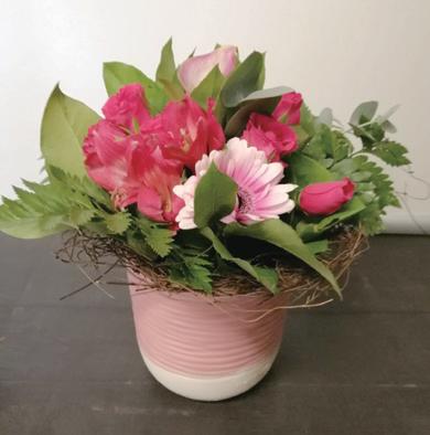 Boeket + bloempot (ø 22cm) €10 Plantjes tussen €10,50 en 13,95