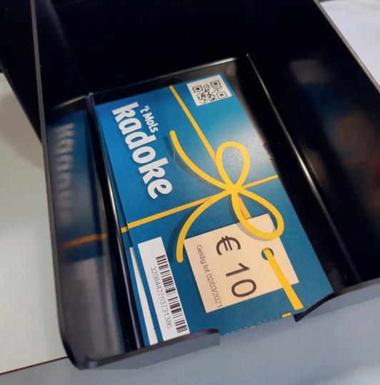 is ook 7 dagen op 7 verkrijgbaar aan de cadeaubonautomaat (Statiestraat doorgang Santo Tomásplein) of online via onze webshop op www. visitmol.be. Voor bedrijven is ’t Mols Kadoke het ideale relatiegeschenk of beloning voor de werknemers.