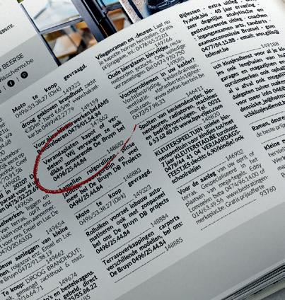 2 SHOP loyaal stusz Platte daken EPDM & ROOFING stusz.plattedaken@gmail. c om ww w .stusz-plattedaken.be 0494 90 12 14 Colman Dakwerken Pannen • Schaliën • Asfalt Asfaltschaliën • Goten en gevels in asfalt • Isolatiewerken • Zinken dakgoten • Herstellingen MEER DAN 40 JAAR ERVARING Hofstede 7 2360 Oud-Turnhout Tel. 014/70.02.97 Gsm 0496/62 91 22 De leukste start van de week, Kempenklok online op maandag! ALTIJD DE goedkoopste VOOR al uw sanitair! Enkel de nieuwste trends en modellen Voor meer inspiratie: sanidump.eu Steenweg op Hoogstraten 72 A, Merksplas - 014 74 82 99
