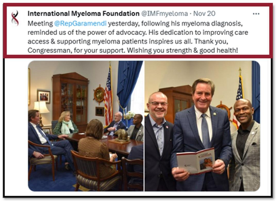 3. Advance Myeloma Research: We advocate for annual appropriations funding for myeloma research and the advancement of clinical trial eligibility and research protocols that ensure representation from diverse populations.