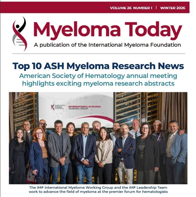 The International Myeloma Working Group (IMWG), a global network of more than 300 myeloma researchers, collaborates to develop consensus guidelines, research standards, and landmark publications